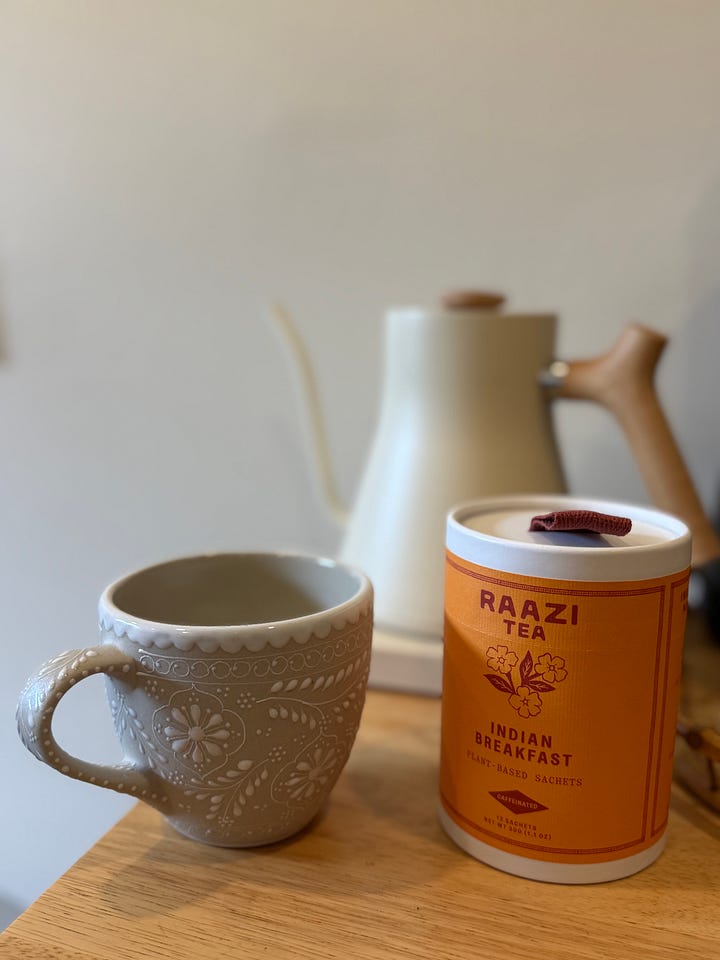 With the weather getting colder, most of my mornings now start with a cup of tea. I like to alternate between a lemon/ginger cube and Raazi’s English Breakfast tea. I don’t know why the world works like this, but pouring any type of milk (except almond, it curdles) into a breakfast tea first thing in the morning is probably one of the most satisfying visuals you could ever experience. I’ve been really loving Raazi’s tea and love Arjun Narayen’s, the founder, origin story, the packaging, and the fact that the tea bags are plant-based. No microplastics here! 🙅♀️